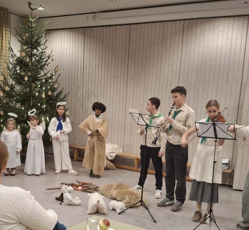 Az ünnepi előadás során a cserkész zenekar élő zenével kísérte a betlehemes játékot: felcsendültek a hegedűk és egy klarinét hangja.