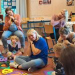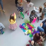 Az ősz színei, illatai és kis lakói voltak a főszereplők: elkészítettük saját süninket, eljátszottuk Sün Balázs meséjét, és közben csodaszép falevelek, gesztenyék, termések varázsolták körénk az őszi erdő hangulatát. A legkisebbek ölbéli dalokkal és közös játékokkal kapcsolódhattak be – sok-sok mosoly született!