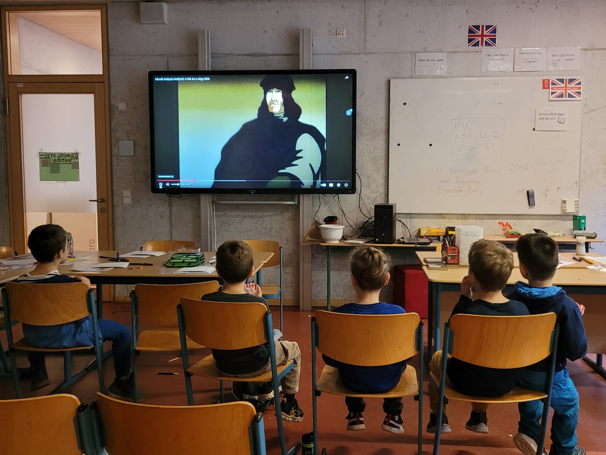 A nap fénypontja a pattogatott kukorica készítés volt 🍿 – igazi mozi-hangulatban néztük meg Mátyás király meséjét: A tök és a négy ökör. 👑