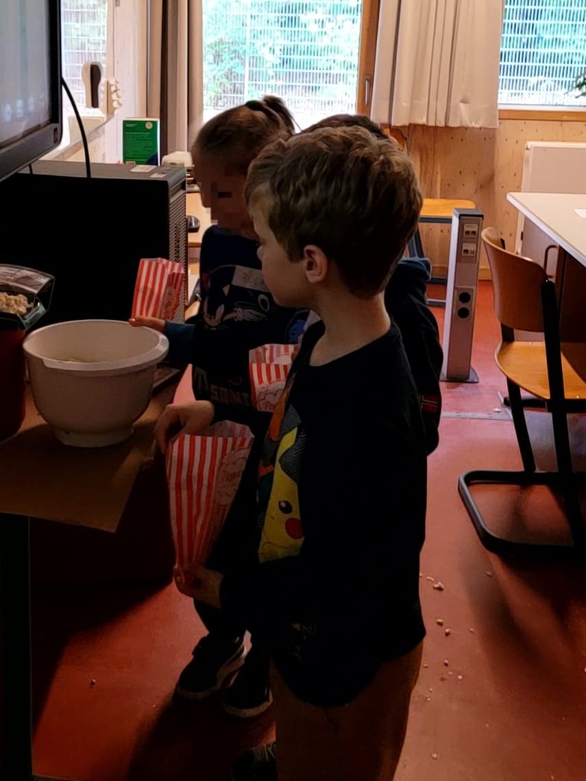 A napköziben folytattuk a kukoricapattogtatást, majd a mozi délutánon 5 Kufli-epizódot is megnéztünk! 🎞️🤗